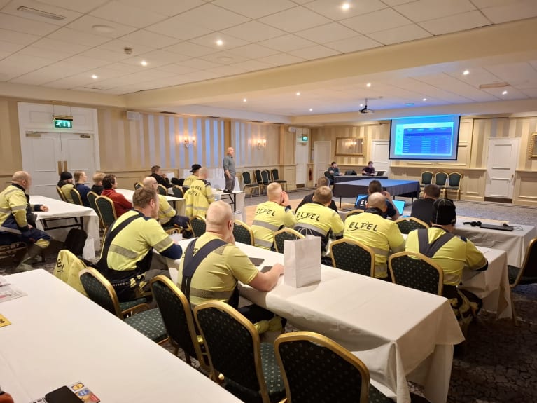Päivittäinen työskentely alkaa majapaikassa perehdytyksellä ja turvallisuuskatsauksella. Joka aamu ennen työmaille lähtöä käymme yhdessä läpi edellisen päivän opit sekä muistutetaan turvallisuusasioista. Työpäivän pituus vaihtelee riippuen kunkin työryhmän kohteesta ja viankorjauksen kestosta. Työturvallisuuskulttuuri on hyvin samanlainen kuin Eltelissä, ja isäntämme kiertävät normaalistikin työmailla varmistamassa, että kaikki tehdään turvallisuusperiaatteiden mukaisesti.