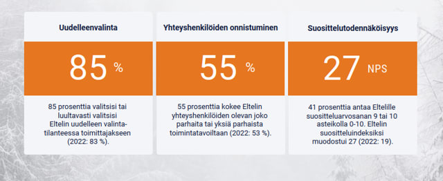 Eltelin vuosittainen asiakastyytyväisyystutkimus on valmistunut – vuonna 2023 parannusta useilla päämittareilla