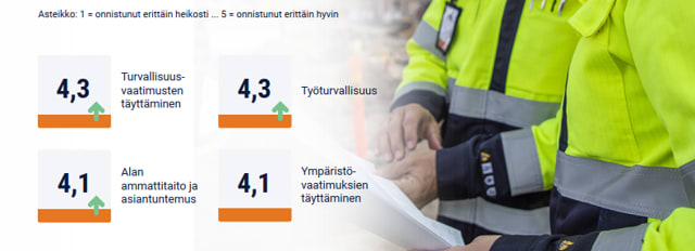 Tutkimustulosten perusteella tyytyväisyys Elteliin on monin tavoin kasvanut. Se näkyy muun muassa kokonaisarvosanan nousussa 3,7 (2022: 3,6). Eltelin arvioitiin onnistuneen erityisen hyvin turvallisuus- ja ympäristövaatimusten täyttämisessä. Korkealle arvostettu alan ammattitaito on meillä vuosien systemaattisen työn tulos. Kehittämiskohteina tulemme panostamaan yhteydenpidon tiivistämiseen sekä asiakkaan kustannustehokkuutta parantavien ratkaisujen tuottamiseen (3,3).
