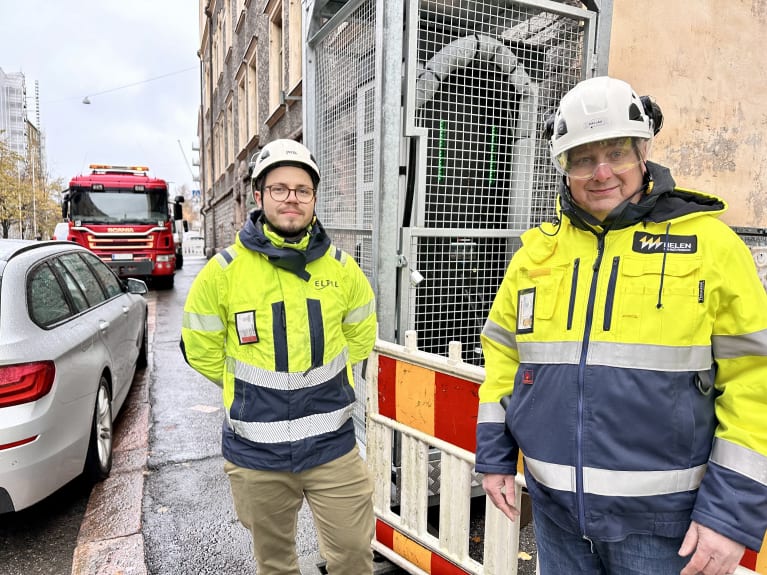 – Pilotin avulla saamme arvokasta tietoa siitä, miten sähkökäyttöinen kaivinkone soveltuu erityisesti kaupunkiympäristössä sijaitsevalle työmaalle. Tällä kertaa kone oli kokoluokkaa isompi ja myös latausratkaisut ovat kehittyneet. Hitachi ZE85 -sähkökaivinkone selviytyikin hyvin työstään ja akkukapasiteetti oli riittävän suuri, toteavat Helen Sähköverkon projektipäällikkö Pertti Lanteri ja Eltelin työpäällikkö Tomas Bärlund.